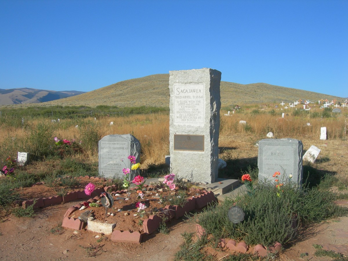 Although she is one of the most famous Native women in American history, Sacajawea’s resting place is contested and shrouded in mystery. One oral tradition suggests that Sacajawea died in 1812 from putrid fever, while other recorded documents and statements made by her descendants record her death in Fort Washakie in 1884. Either way, she has a grave in a small burial ground that is now called Sacajawea Cemetery on the Wind River Reservation. There is a bronze statue and large memorial plaque, and visitors that make the trek regularly leave flowers in her honor.