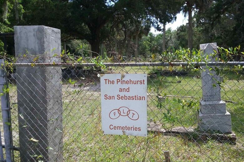 Pinehurst and San Sebastian is believed to be the oldest segregated Black cemetery in Florida, with headstones dating back to the 1840s. Many buried here were born into slavery, but later burials were of those who were not allowed to be buried in white cemeteries. The site was virtually abandoned in the mid-twentieth century, but has recently been cleaned up in 2015 due to the efforts of volunteer organizations and a state lawmaker. Those who visit can see graves bearing marks of various African burial rituals, including planting trees in lieu of erecting headstones and leaving offerings of stones, seashells, and mementos to placate the souls of the departed.